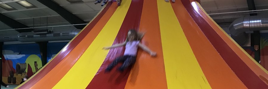Draußen herrlich nasses Regenwetter – drinnen beste Stimmung beim Klettern, Rutschen, unter der Bälledusche, Pommes und Muffins.